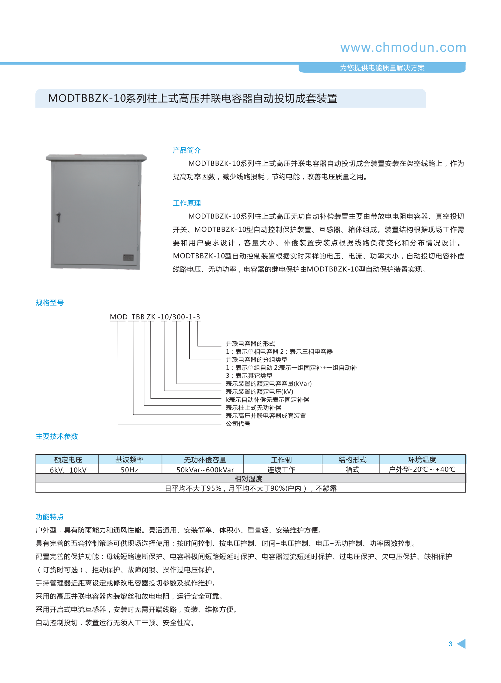 MODTBBZK-10系列柱上式高压并联电容器自动投切成套装置