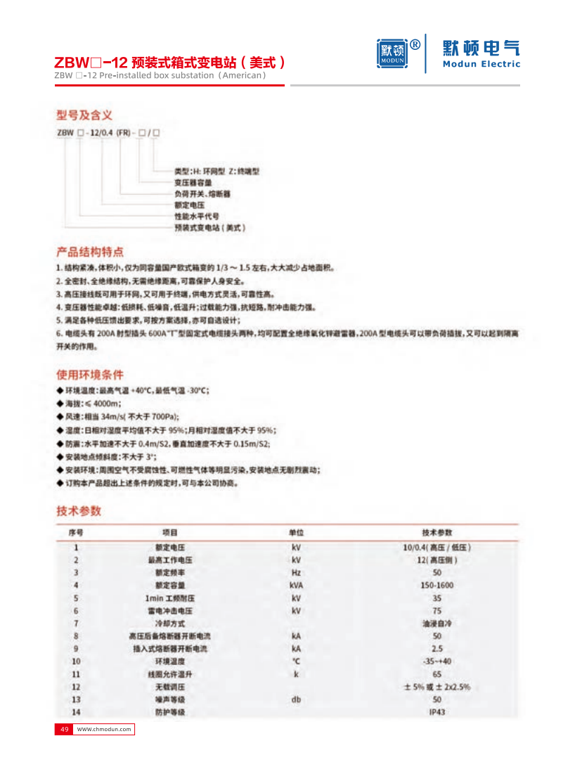 ZBW-12预装式箱式变电站〔美式)