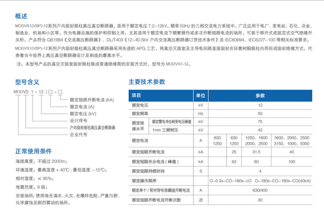 MODVS1(VBP)-12户内固封极柱高压真空断路器